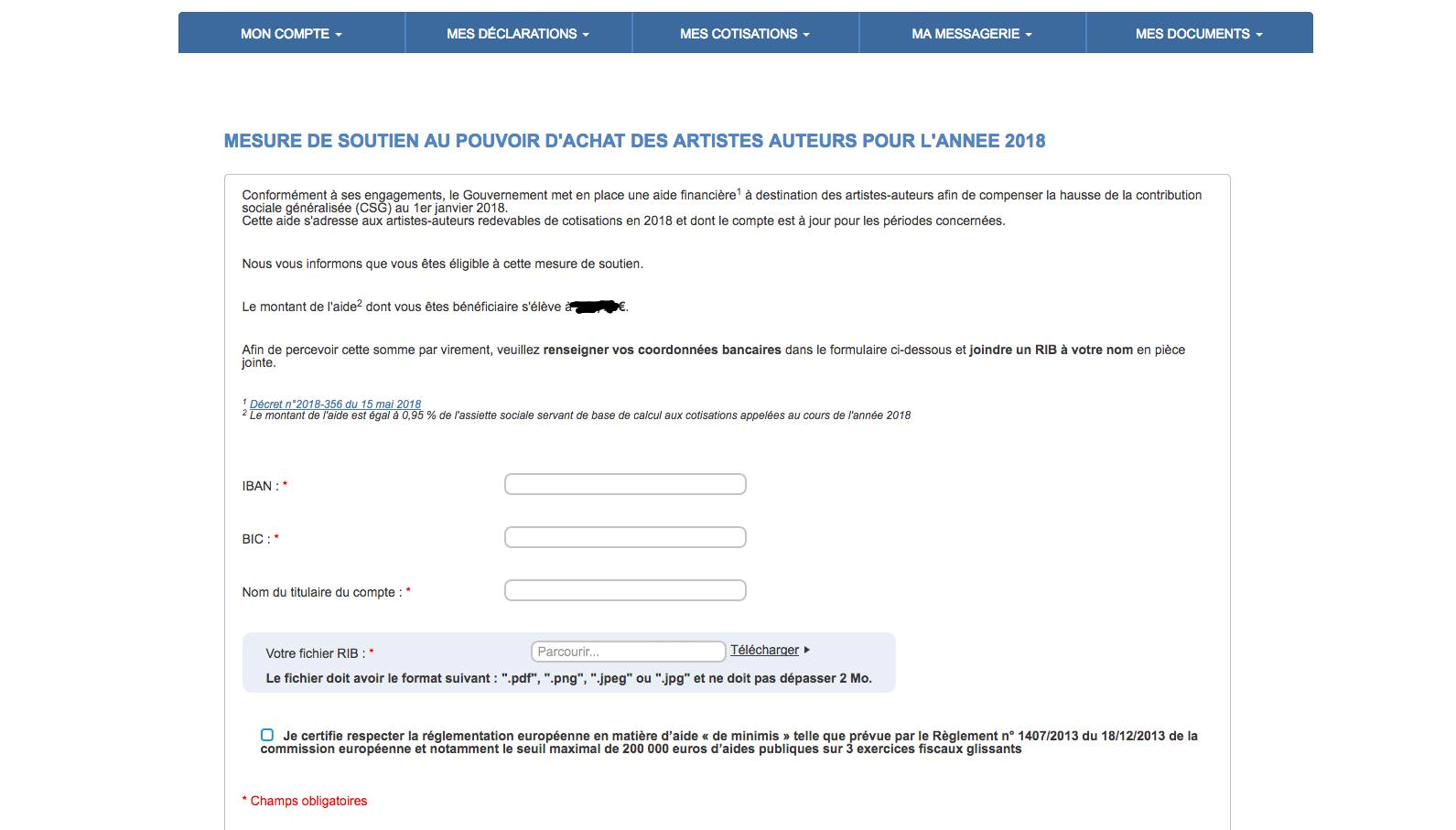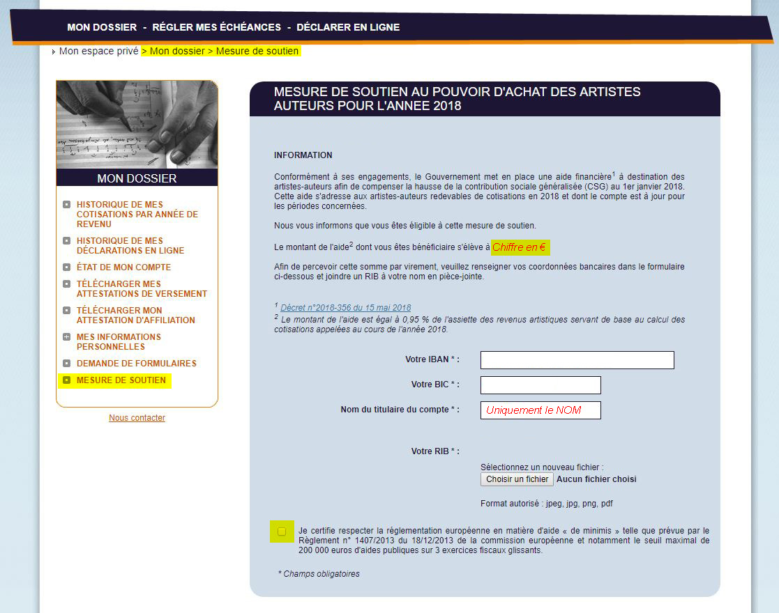 Le dispositif nécessite que les auteurs concernés par le dispositif soient informés d’aller sur leur espace personnel, dans la rubrique “mon compte” et après dans la page “soutien au pouvoir d’achat” …